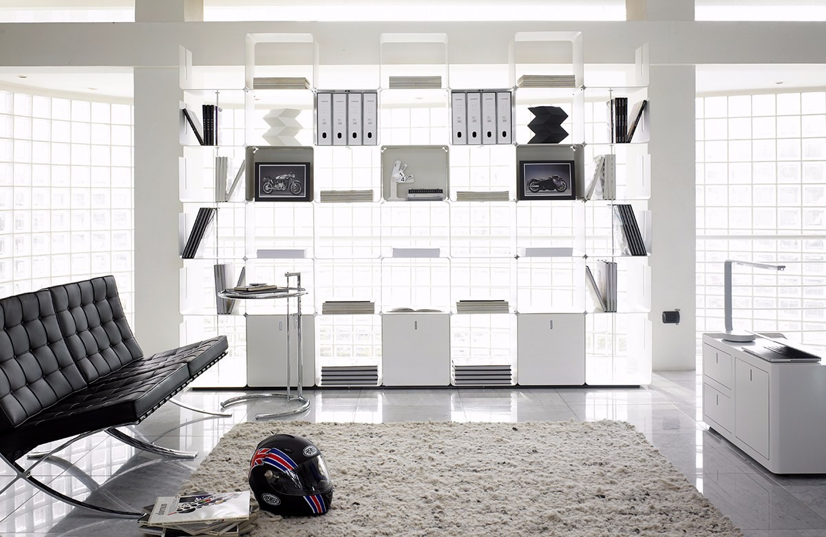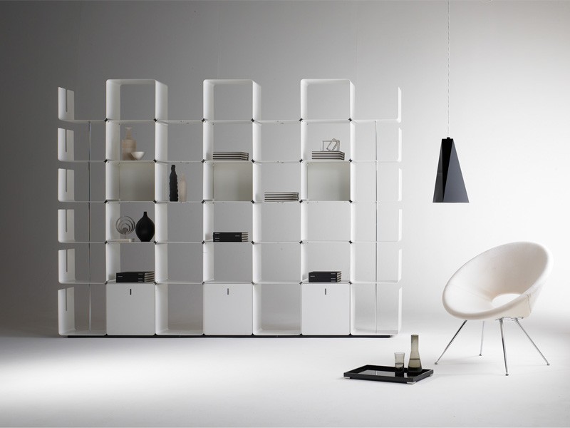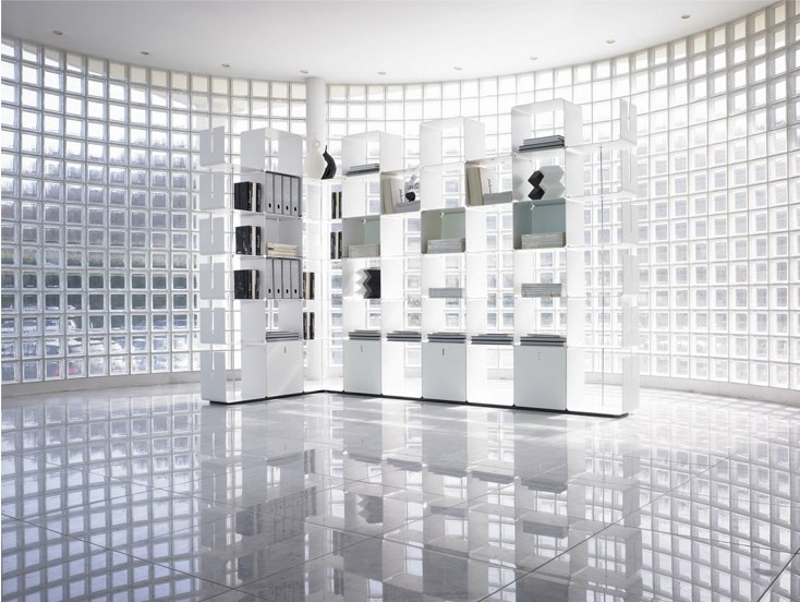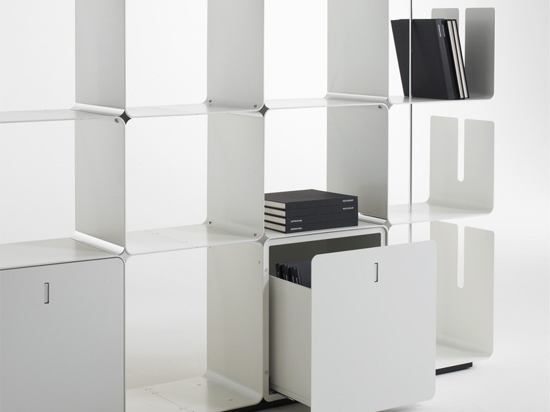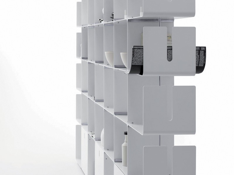 Der Bücherregal Angle steht für ein kreatives, flexibles Einrichten von Räumen. Es besteht aus pulverlackiertem Stahl- bzw. Aluminiumblech und bei der Herstellung sehr großen  Wert auf kleinste Details und Qualität gesetzt. Dank der Verwendung dieser Materialien können geringe Stärken eingesetzt werden, wodurch sich die Produkte durch eine schlichte Linienführung, optische Leichtigkeit und ein hochentwickeltes Design auszeichnen.Aufgrund der Modularität und Vielseitigkeit der Kollektionen lassen sich alle Kompositionselemente perfekt in jedes Ambiente einfügen: Wohnräume, Büros, Gemeinschaften.