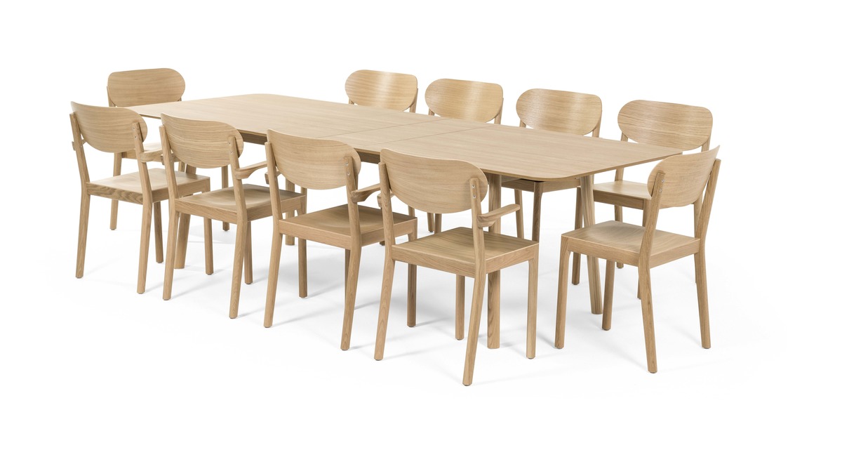Tischeplatten sind Standard in vier Hochdrucklaminaten erhältlich. Birkenlaminat (F7921 Matte 58), hellgraues Laminat (F7927 Folkstone), weißes Laminat (F6463 Sheer White) und Eichenlaminat (F5374 Elegant Oak Naturelle).