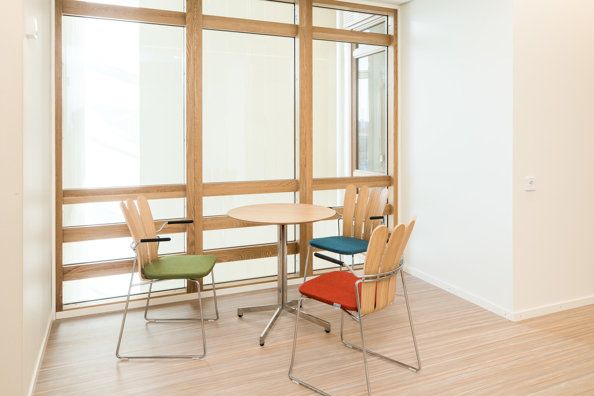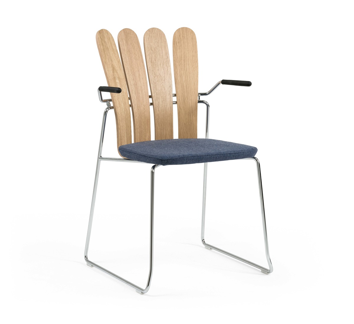 DIS Stapelstuhl mit Armlehnen-DIS Stapelstuhl kommt mit Sitz gepolstert. Rück in Birke oder Eiche natur oder lackiert