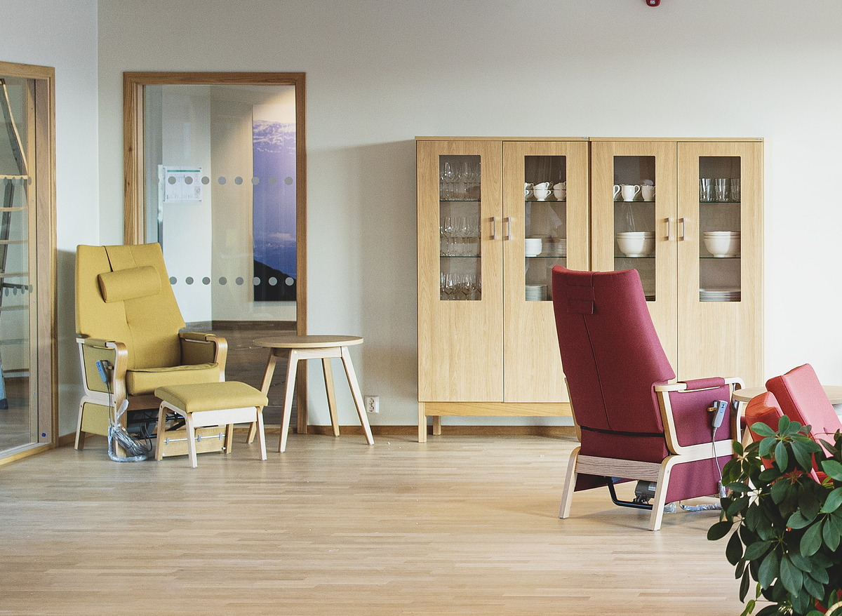 Der gepolsterte Duun Hochlehner mit Hebemechanismus ist mit gepolsterten Armlehnen ausgestattet und ist in Birke massiv, Eiche massiv oder lackiert/gebeizt (aus Standardpalette) erhältlich.
