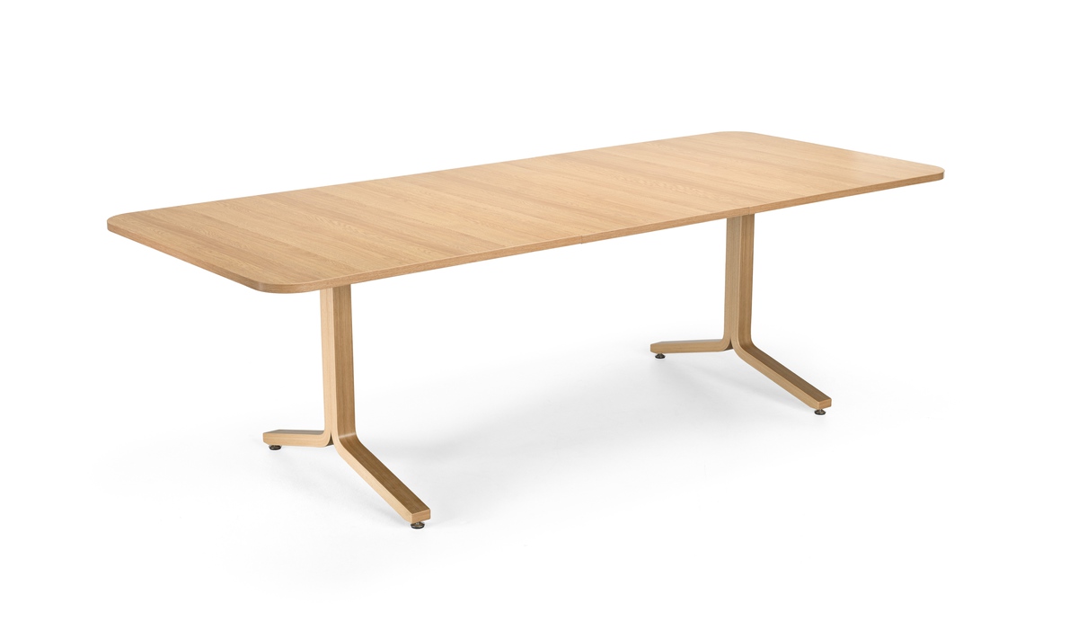 Tischplatten sind Standard in vier Hochdrucklaminaten erhältlich. Birkenlaminat (F7921 Matte 58), hellgraues Laminat (F7927 Folkstone), weißes Laminat (F6463 Sheer White) und Eichenlaminat (F5374 Elegant Oak Naturelle).