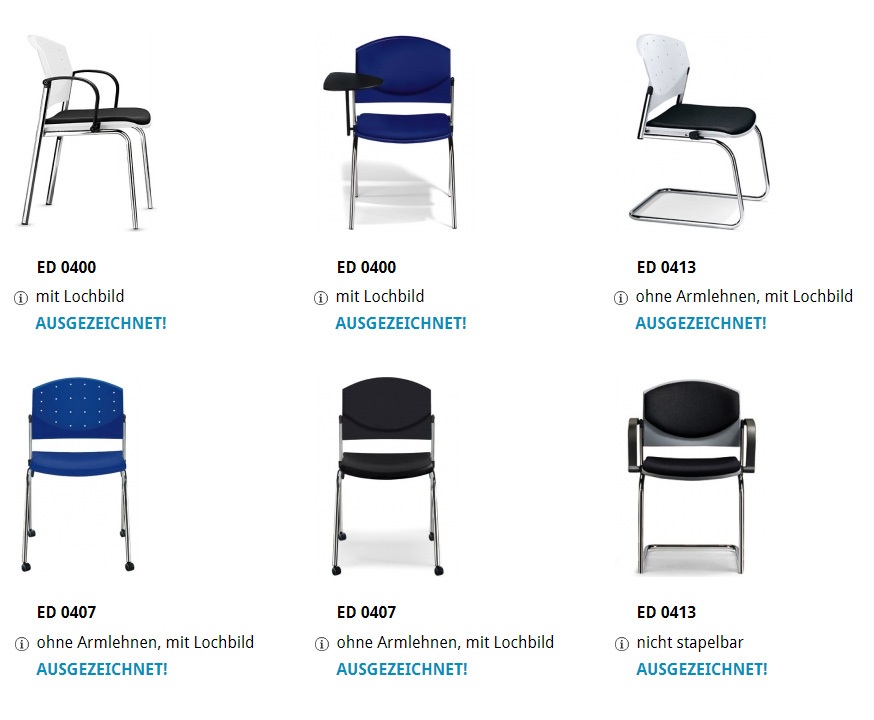 Alle Vierbeiner-Modelle sind 8fach stapelbar (Freischwinger 4fach).