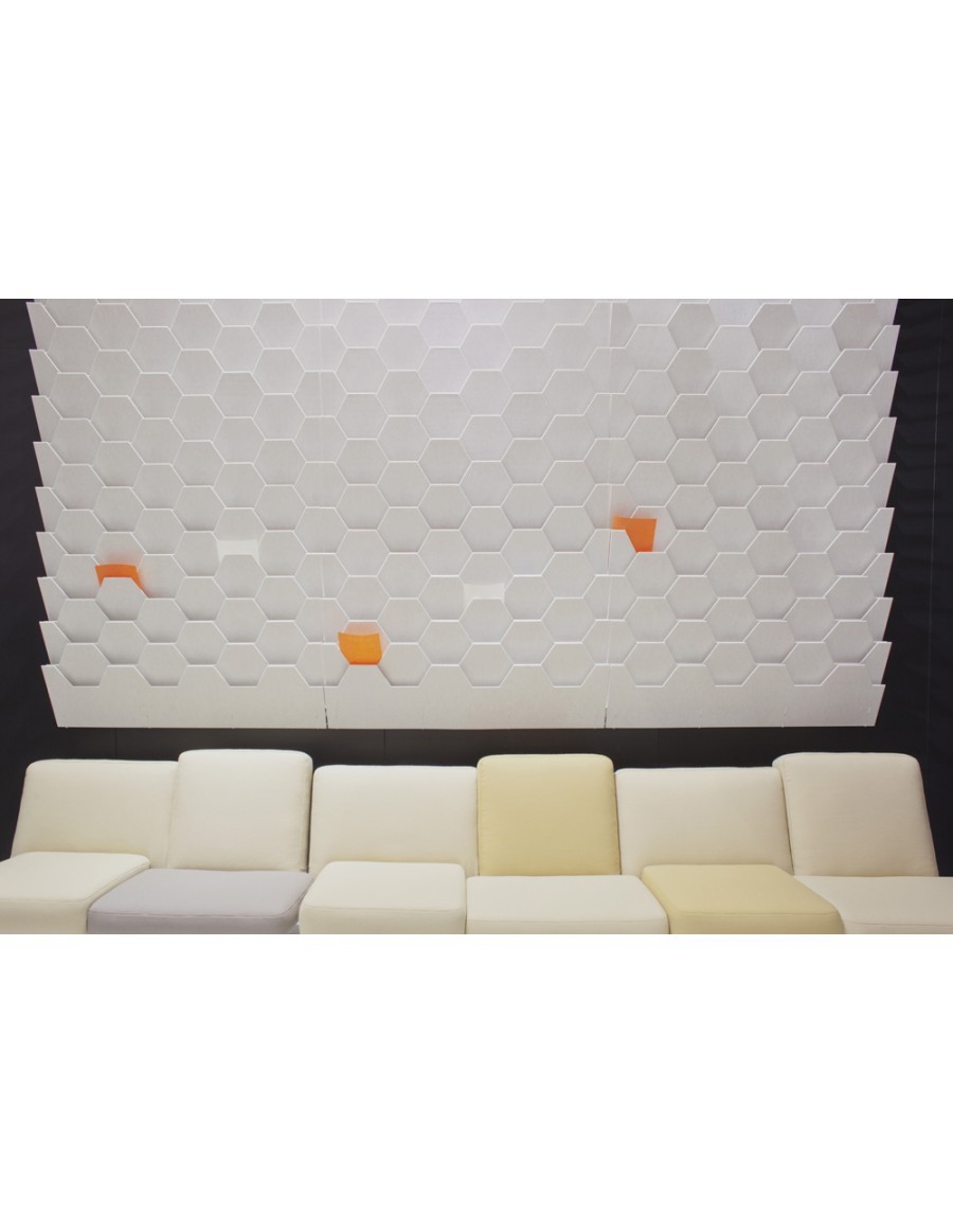 Felt Art Wabe, Wanddisplay, Wandmagazin Design-<p>Feltart ist ein kunstvoller Zeitschriftenpräsenter,  ein Stauraum und eine schöne akustische Wand. Feltart ist aus 100% recyclingfähigem Polyesterfilz hergestellt. Das Design sorgt für minimale Verschwendung von Filz- und Metallteilen.</p>