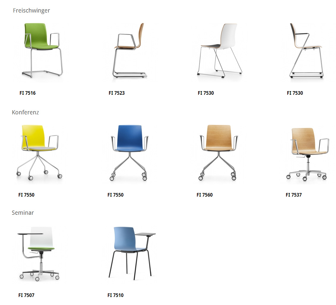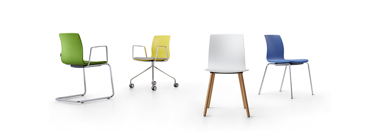 Angelehnt an den weichen Schwung eines Blütenblatts bilden die Sitzschalen der Fiore-Kollektion eine formvollendete Basis für vielfältige Designs. Die natürliche Inspiration setzt sich in den variantenreichen Gestellen fort: Ob als Freischwinger, Vierfußausführung oder mit Drehkreuz, die individualisierbaren Modelle erfüllen alle Anforderungen.