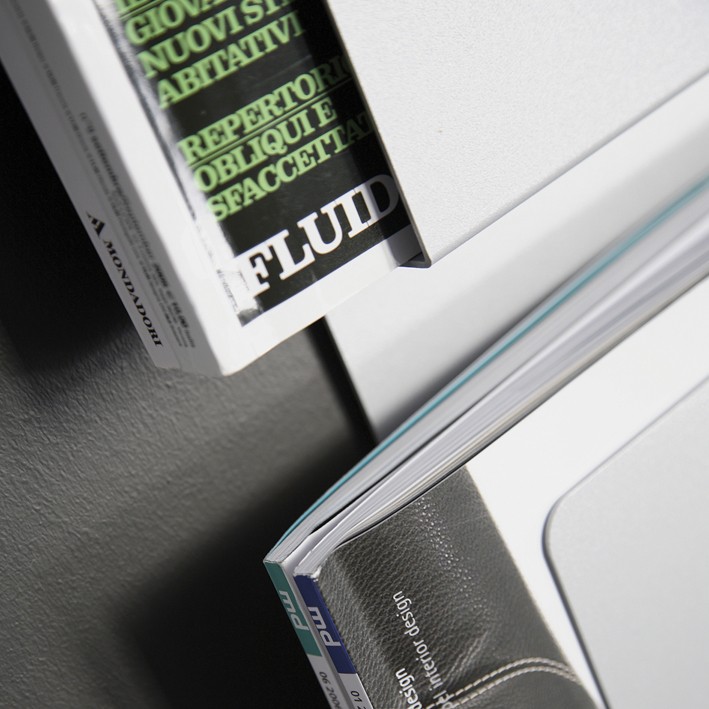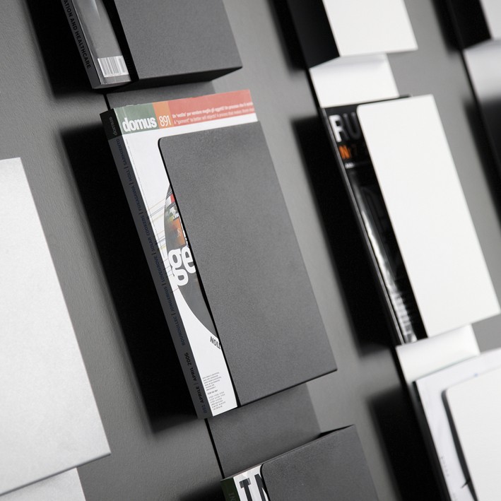 Der Magazin/Prospekthalter Castan Wall lenkt die Aufmerksamkeit durch sein stilvolles Design auf die Produkte. Die Umschlagseite von Zeitschriften ist in der Regel ausdrucksstark und bunt gestaltet, was schnell ein unruhiges und chaotisches Bild erzeugt.