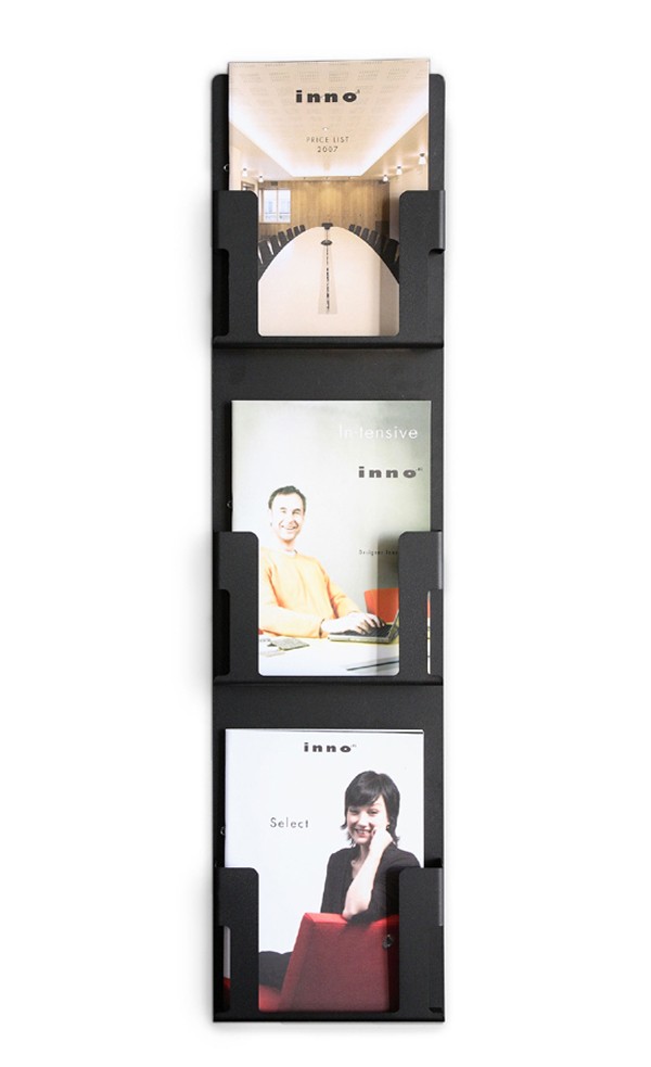 Der  Magazin/Prospekthalter Mind versprüht ein ästhetisches Design und lenkt damit alle Aufmerksamkeit auf die Produkte. Im Gegensatz zu „Castan“ zeigt der Mind-Broschürenständer den größtmöglichen Bereich der Umschlagseite von Zeitschriften. Dadurch wird die Umschlagseite sofort wahrgenommen und der Betrachter kann entscheiden, welche Broschüre er lesen will. Der Zeitschriftenhalter integriert sich wie ein Zusammenspiel in die umgebene Architektur. Die Oberfläche ist pulverbeschichtet und in den Farben matt Schwarz, matt silber und glänzend Weiß (RAL9016) erhältlich.