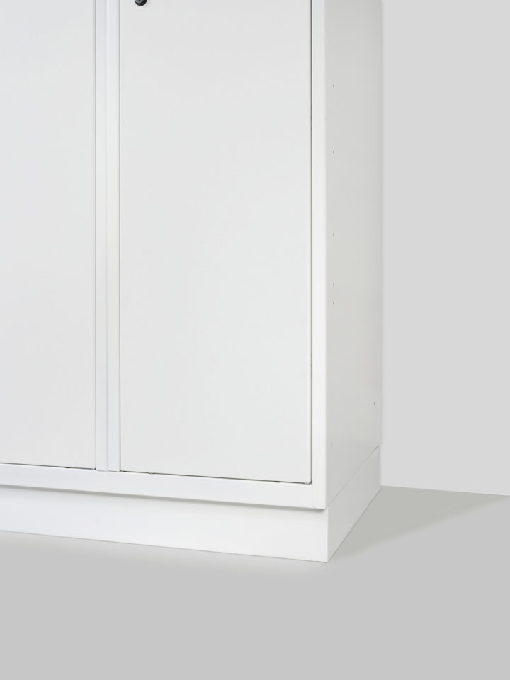 Die Atlantis Garderobenschränke können optional mit einer extra hohen Sockelleiste von 10 cm ausgestattet werden. Die Sockel sind in unterschiedlichen Breiten erhältlich.