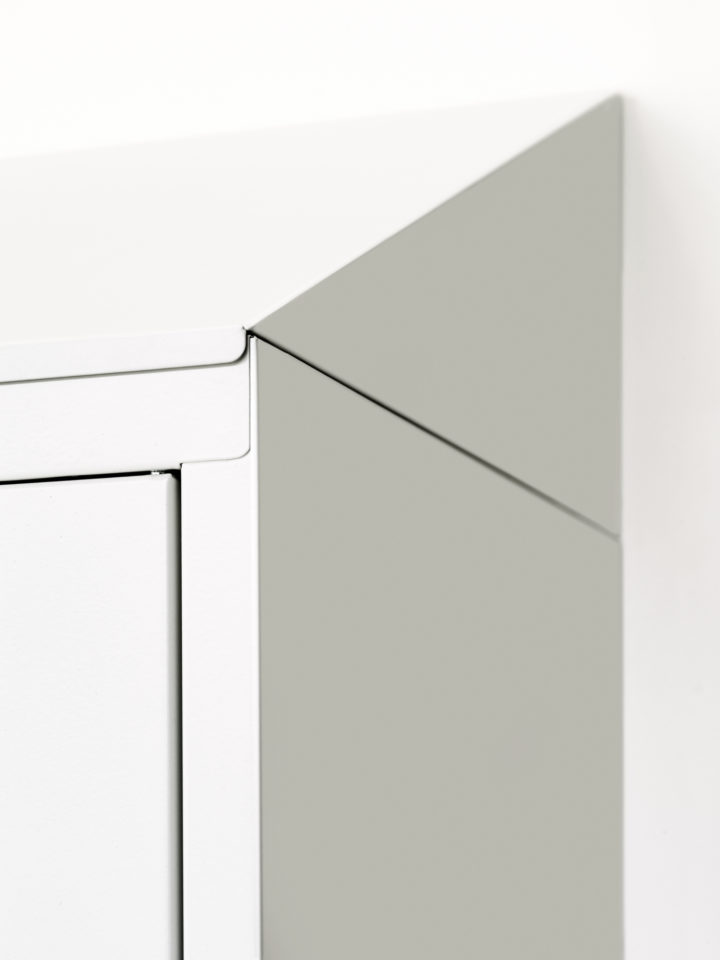 Es ist mehr möglich, als F68Sie denken. Vervollständigen Sie die Schränke z.B. mit Nummern oder Namensschildhaltern. Wollen Sie verhindern, dass Gegenstände auf die Schränke gelegt werden? Dann ist eine schräge Oberseite die Lösung.