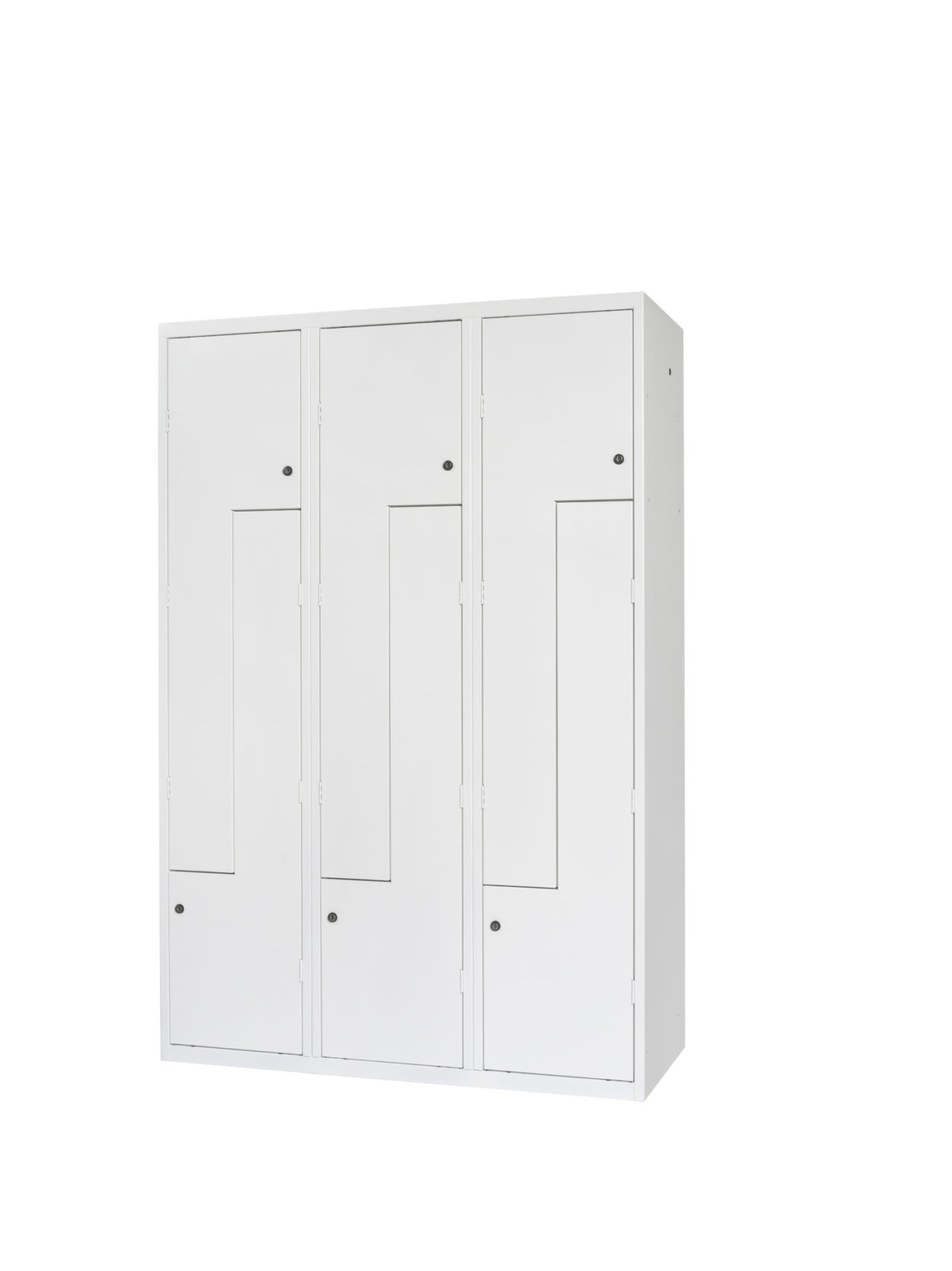 Neben den Garderobenschränken umfasst das Atlantis Schrankprogramm auch Z-Schränke und Schließfächer aus Stahl.