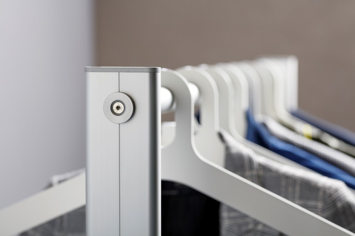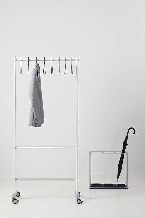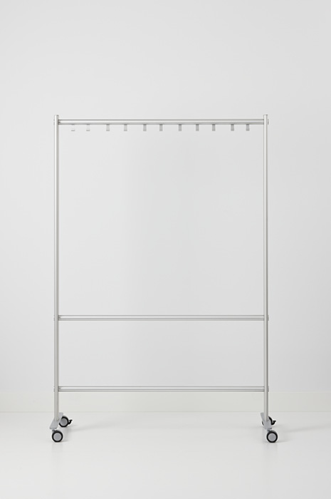 Garderobenständer Round20 Alu-Das Alu-Element hat Ständer aus Aluminium und ein Untergestell aus Stahl. Die Ständer sind in weißem