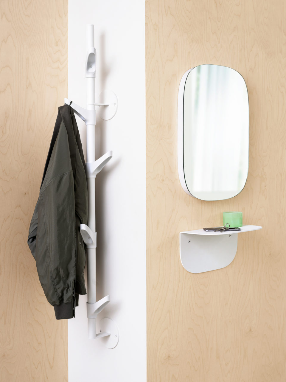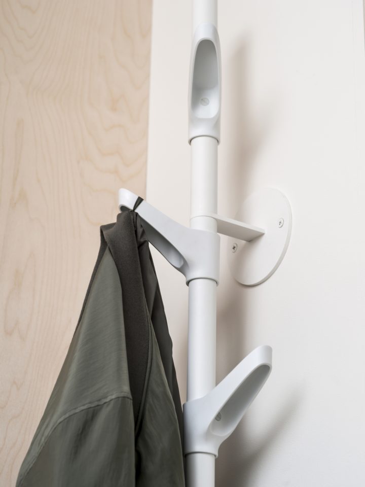 Die elegante Slide Familie wertet jeden Eingangsbereich auf. Die flexible Slide W Wandgarderobe besteht aus einem Metallrohr mit weißer Pulverlackbeschichtung. Die vier Kunststoffhaken können in verschiedenen Positionen befestigt werden. Brauchen Sie mehr Platz um Jacken aufzuhängen? Dann ist Slide W2 eine gute Alternative.