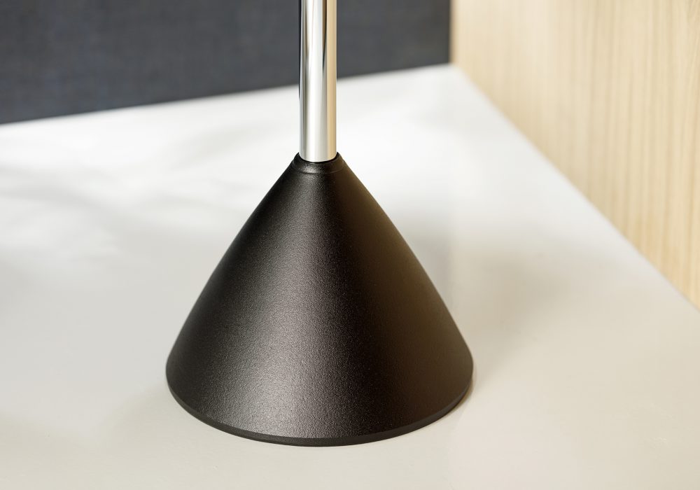 Die Krone aus Hochglanz poliertem Aluminium ist das Merkmal von diesem Garderobenständer ein Designelement mit Charakter. Trotz der schlanken Form bietet der attraktive gusseiserne Fuß unübertroffene Stabilität. Dieser Garderobenständer ist mit einfacher oder doppelter Krone erhältlich. Die Stange gibt es in mattschwarz oder Chrom, den Fuß in mattschwarz oder silbergrau.