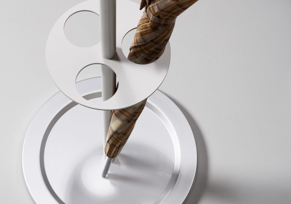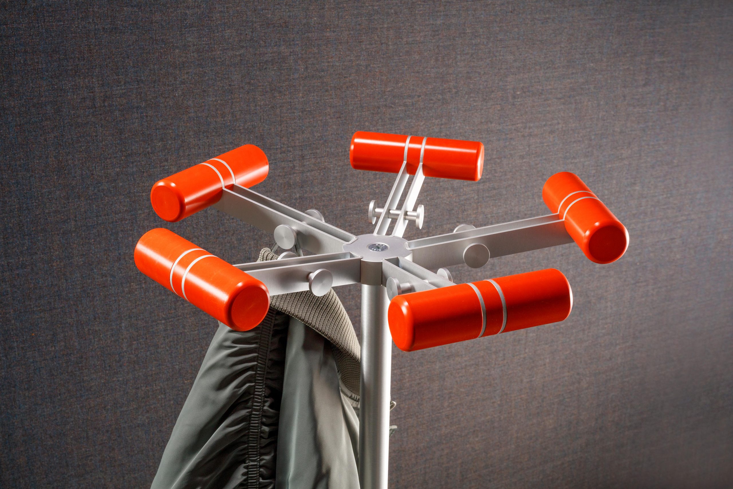 Velvet ist ein Designerkleiderständer, der sich überall zuhause fühlt. Mit Knöpfen in Schwarz, Weiß, Orange sieht dieser Garderobenständer schick und modern aus. Sie haben die Wahl zwischen drei, vier oder fünf Armen. Zusätzliche Haken sorgen für zusätzliche Kapazität. Krone, Rahmen und Fuß wurden aus anodisiertem Aluminium und mit Gefühl fürs Detail vollendet. Der Fuß ist aus Stahl und sorgt für stabilen Stand.