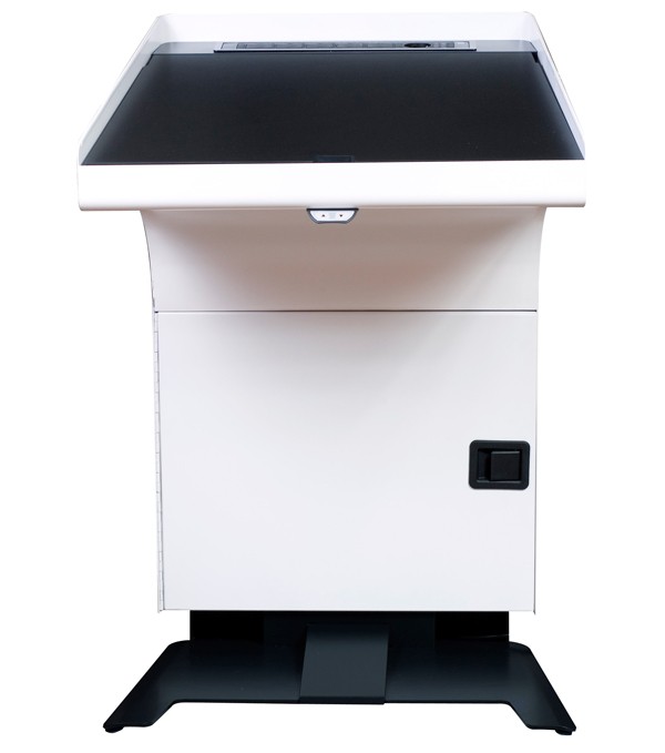 Das Rednerpult ist multifunktionell und kann somit nicht nur mobil mit dem Rollstuhl genutzt werden. Es ist so elektrisch höhenverstellbar, dass es auch im Stehen verwendet werden kann. Das Bedienfeld ist mit einem einfachen Tastenfeld versehen und großen Tasten. Es kann mit einem LED-Licht dezent beleuchtet werden. Des weiteren bietet das Pult einen zusätzlichen Stauraum für wichtige Dokumente oder Geräte, die man für die Präsentation nutzt. Das sind unter anderem Multimedia, wie Touchscreens oder LCD-Monitore. Dank der modern gehaltenen Einrichtung lassen sich die Hilfsmittel für die Präsentation dezent verstecken. Alle wichtigen Arbeitsgeräte lassen sich problemlos vom Rollstuhl aus erreichen. Der Redner im Rollstuhl muss somit während des Vortrages nicht das Pult verlassen. Das hochwertig gebaute Pult ist elegant und komplett umschlossen, sodass der Zuhörer keine Kabel oder Arbeitsmaterialien sehen kann.