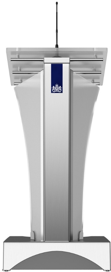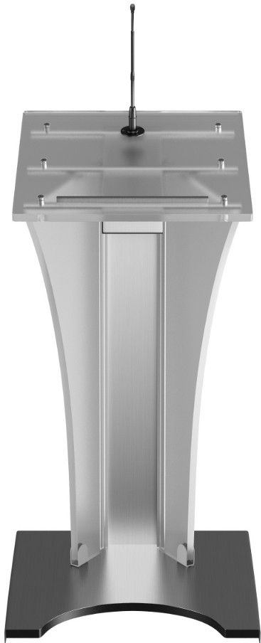 Das Kaiser Premium Rednerpult wird aus den hochwertigsten Materialien hergestellt. Die Seitenblenden sind aus satiniertem Acrylglas. Auf Wunsch können die Blenden auch andersfarbig ausgeführt werden. Die aus gebürstetem Edelstahl hergestellte Standsäule und der verkleidete Sockel lassen dieses Rednerpult prachtvoll und elegant erscheinen.