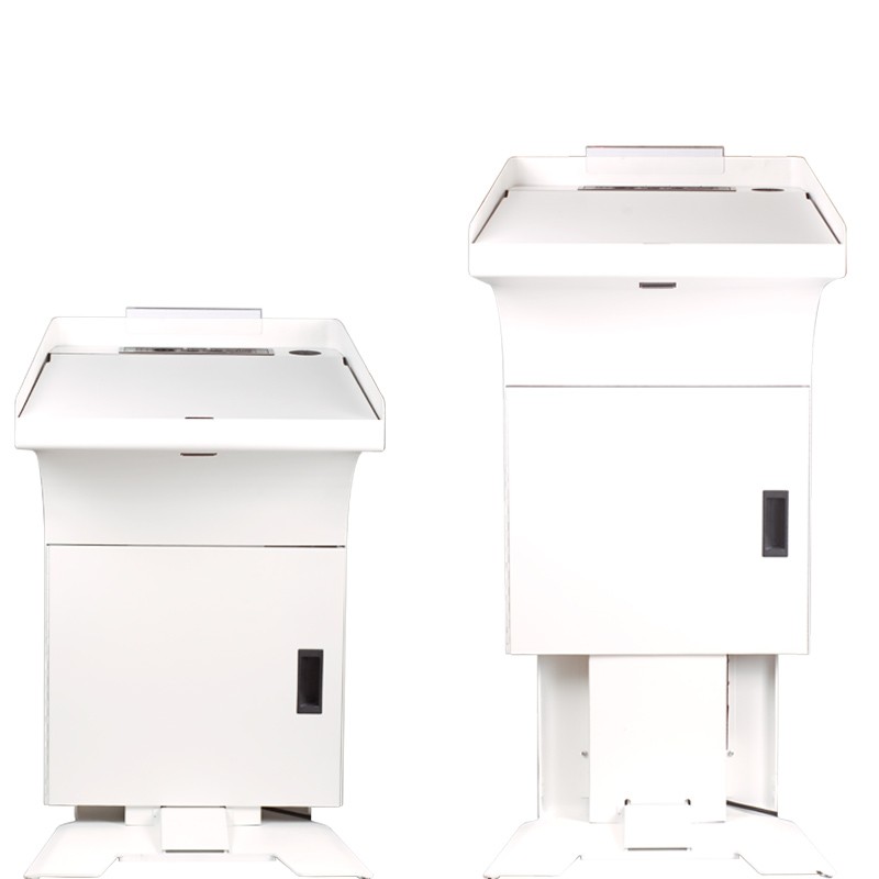 Das Rednerpult ist hochwertig hergestellt und erfüllt für uns alle Anforderungen an einen Rednerpult der Extraklasse. Es sehr flexibel aufgebaut und kann an Kundenanforderungen problemlos angepasst werden. Unsere Kunden benutzen dieses elekrisch höhenverstellbare Rednerpult-barrierefrei an Universitäten, Schulen, Banken, in Veranstaltungen, auf Tagungen, in kleinen bis großen Veranstaltungsräumen. Das Rednerpult ist höhenverstellbar und an der Unterseite sind Rollen für die Positionierung des Rednerpultes auf dem Podium. Das Rednerpult höhenverstellbar bietet eine individuelle Einstellung an die Körpergröße und Bedürfnisse jedes einzelnen Nutzers.