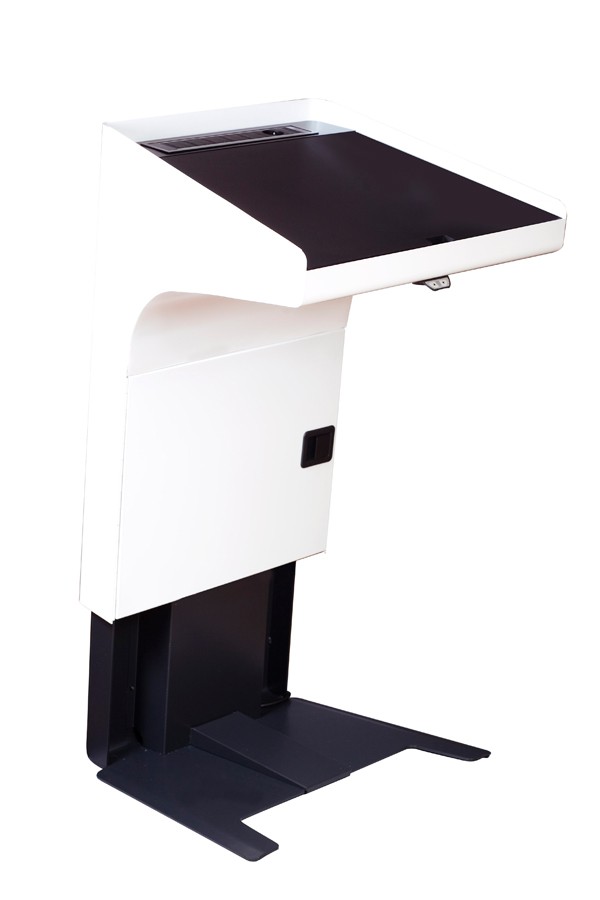 Dieses elektrisch höhenverstellbare Rednerpult ist nach den höchsten Qualitätsansprüchen entwickelt worden und wird insbesondere den Bedürfnissen von Rollstuhlfahrern gerecht.