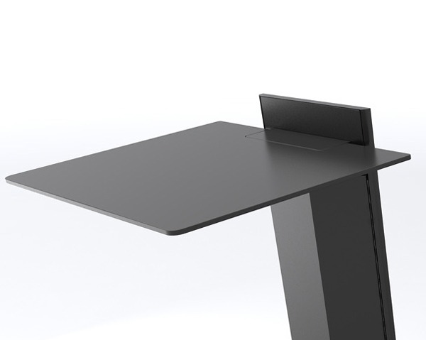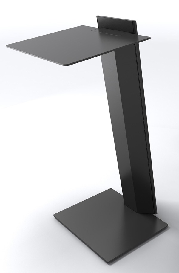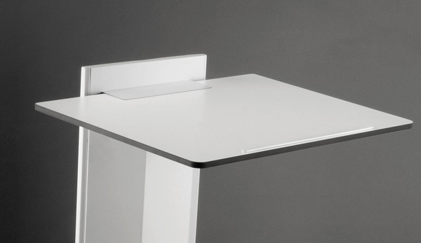 Die Ablagefläche ist aus PE 10mm und entsprechend der gewählten Farbe (Weiß oder Schwarz) foliert. Mit einer Gesamthöhe von 1250mm kann es als Rednerpult oder Stehpult verwendet werden.