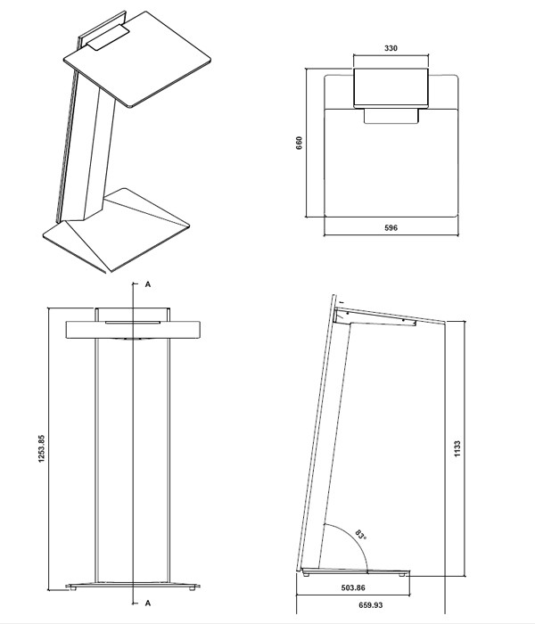 Mit einer Gesamthöhe von 1250mm kann es als Rednerpult oder Stehpult verwendet werden. Er ist in weiß erhältlich.