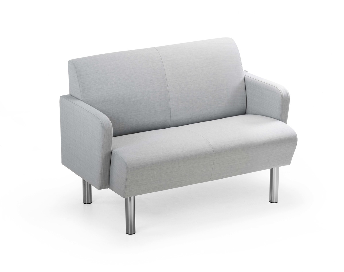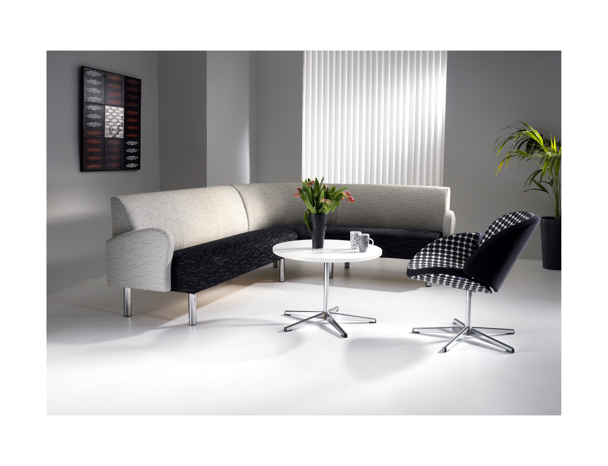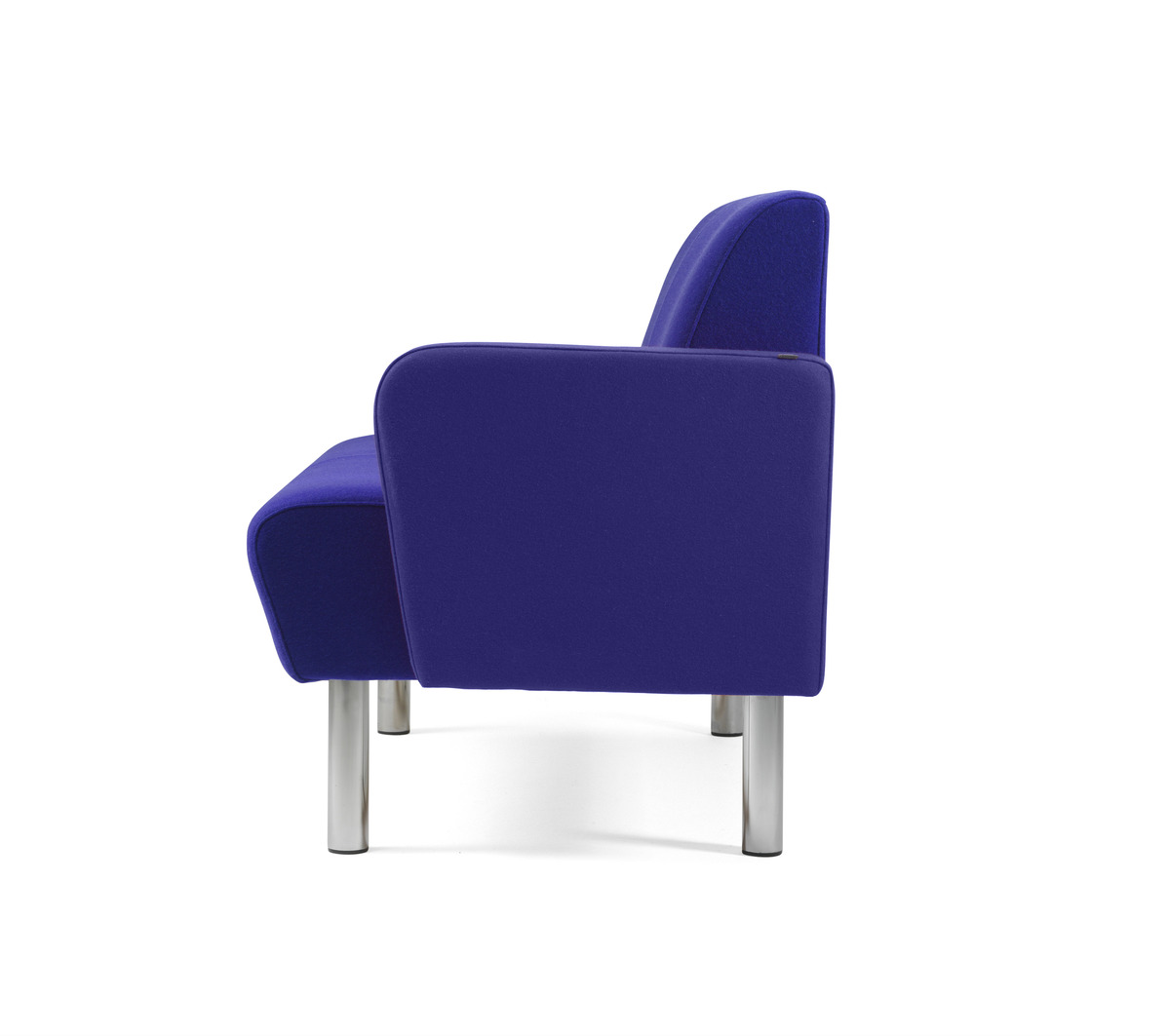 Die Modul Sitzgruppe besteht aus 52, 102 und 153 cm Modulen und 45° und 90° Einheiten für die Innen- und Außen Ecken. Beine in schwarzem oder grauem Epoxid, Chrom, Birke, Buche oder lackiert (aus Standardpalette).