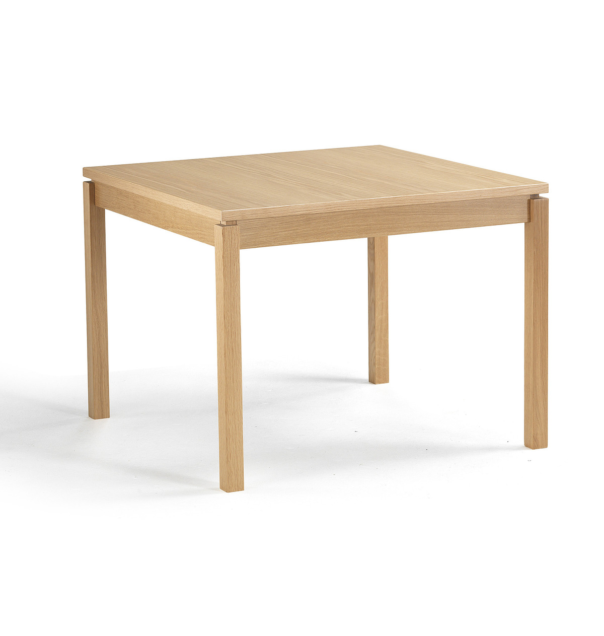 Der Modus Ess- und Kaffeetisch ist in Standardlaminatsortiment erhältlich. Beine aus Massivholz.