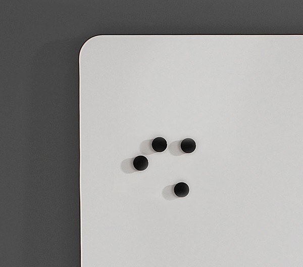 Ein innovatives und durchdachtes Whiteboard für die Wand, das keinen Platz im Raum wegnimmt. Dennoch ist es durch seine filigranen Rundungen und einem dünnen, schwarzen Liner im Design auffällig zurückhaltend