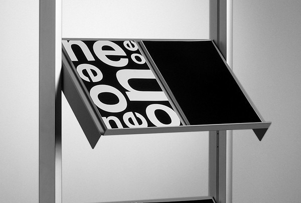 Merchandising-Werkzeuge müssen vielseitig sein: Dieses System besteht aus verschiedenen Elementen zur flexiblen Ausstellung in unterschiedlichen Ausführungen. Die Stärke dieses Systems ist seine Vielseitigkeit. Als Werbeelement überzeugt es durch seine Einfachheit der Linien, damit Ihre Botschaft in den Mittelpunkt rückt.