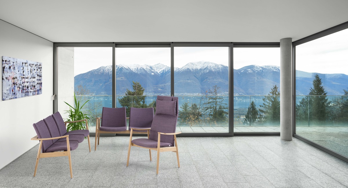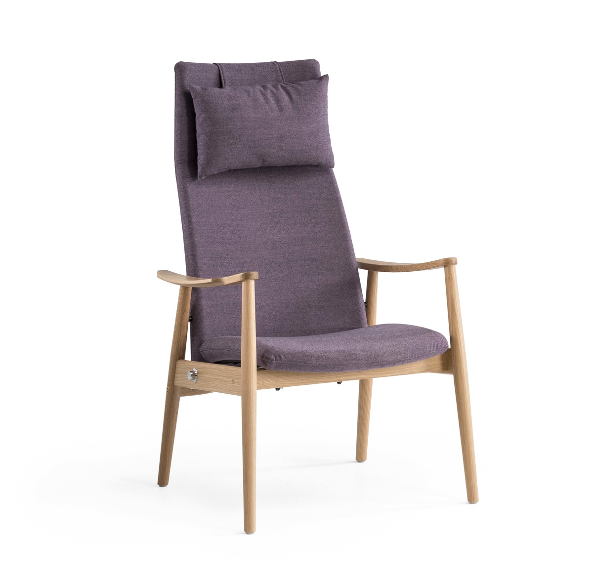 Passende Fußbank erhältlich.Der Nordia Hochlehner ist in Birke massiv, Eiche massiv oder lackiert/gebeizt (aus Standardpalette) erhältlich.