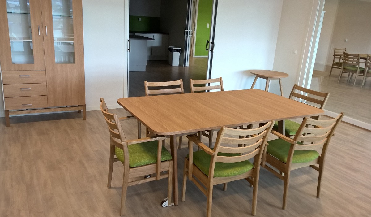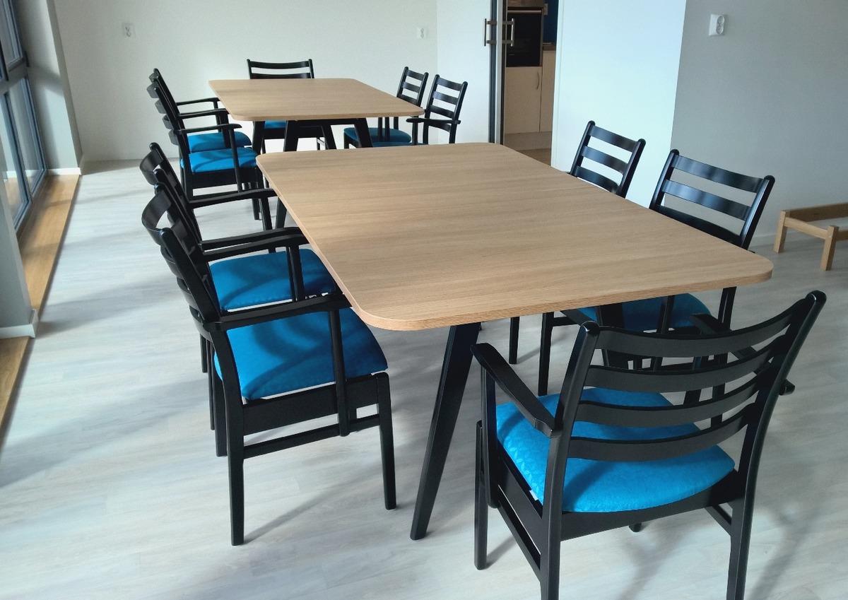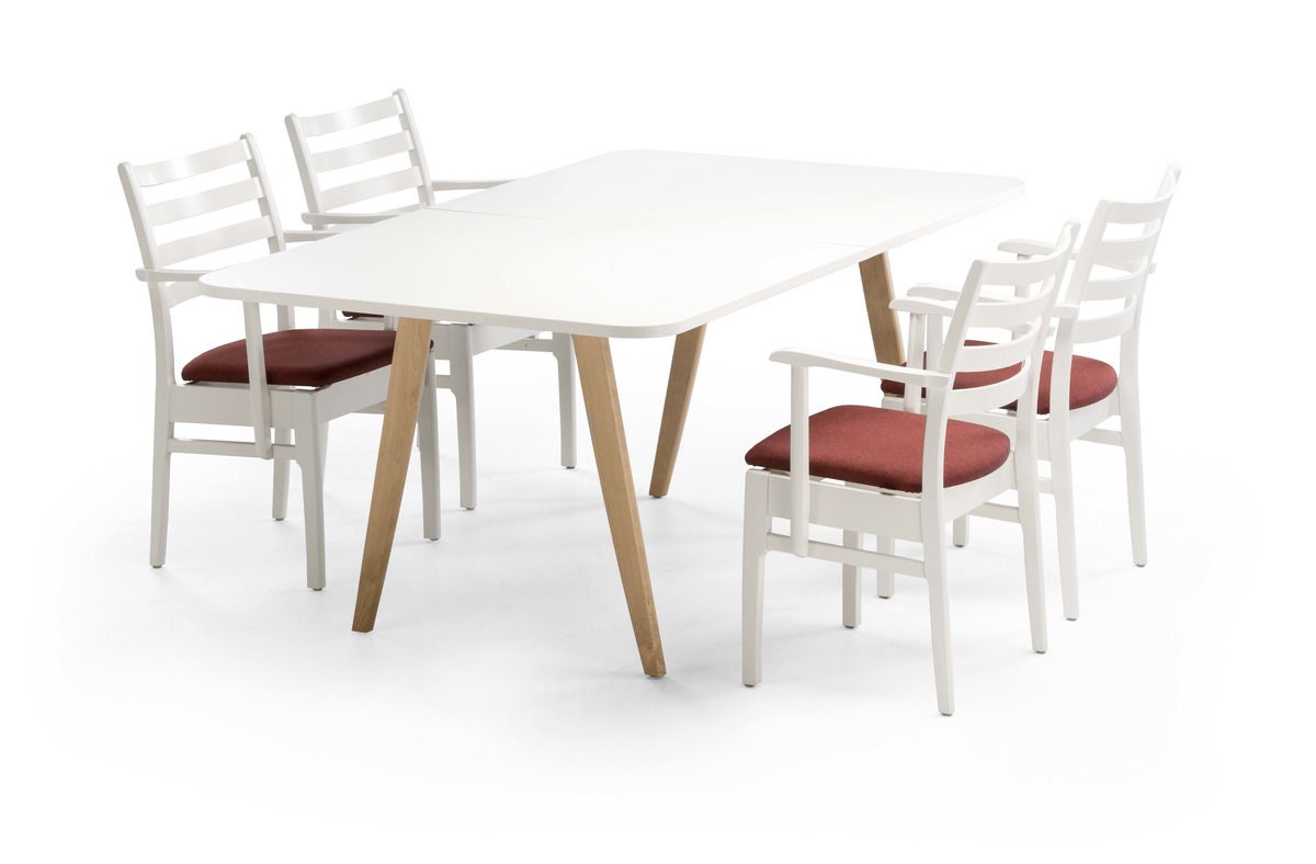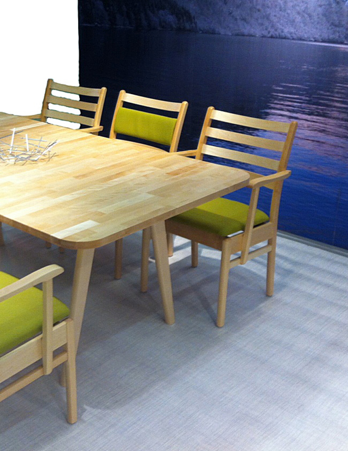 Der 180×100 Tisch kann auch mit einer Tischplatte aus Birke massiv ausgestattet werden.