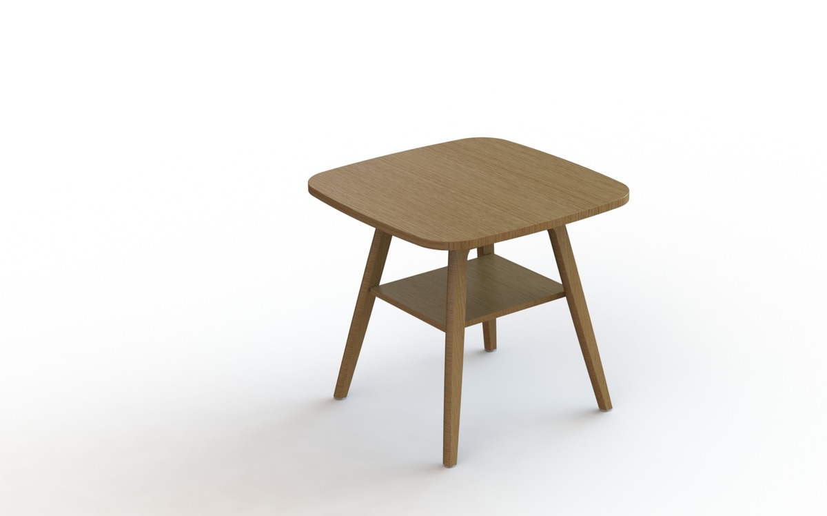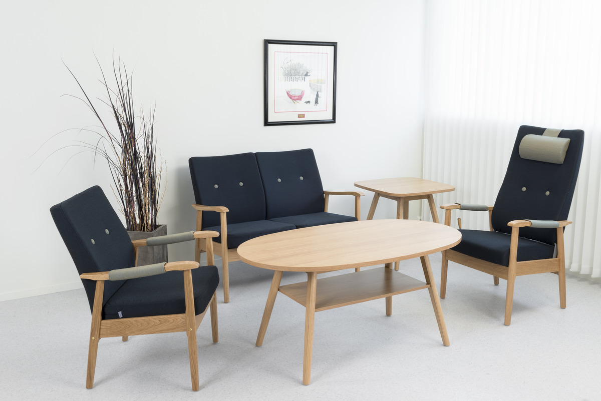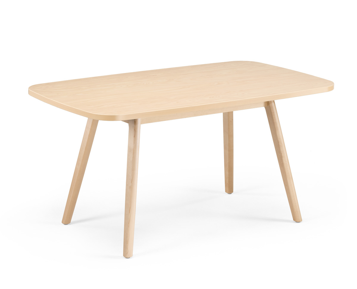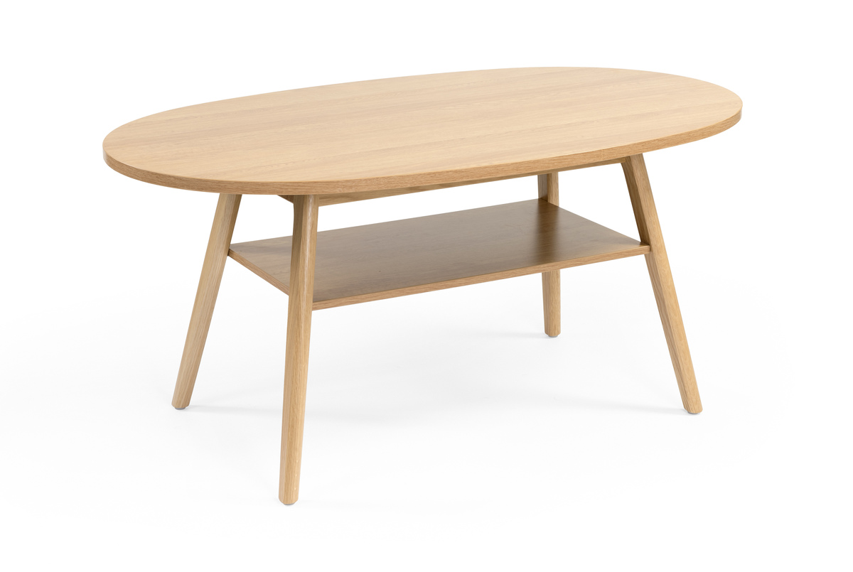 Der Pan Kaffeetisch ist in Standardlaminatsortiment erhältlich. Beine aus Massivholz.