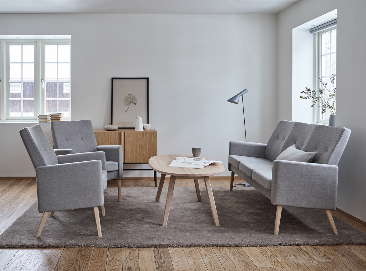 Die Pan Sitzgruppe ist in Birke oder Eiche erhältlich.