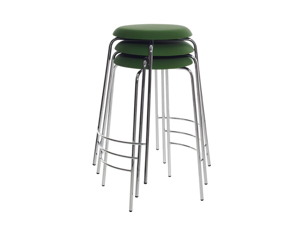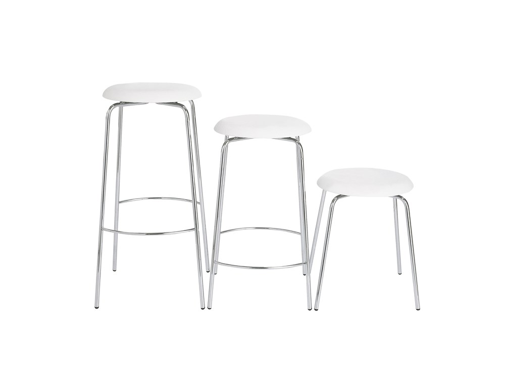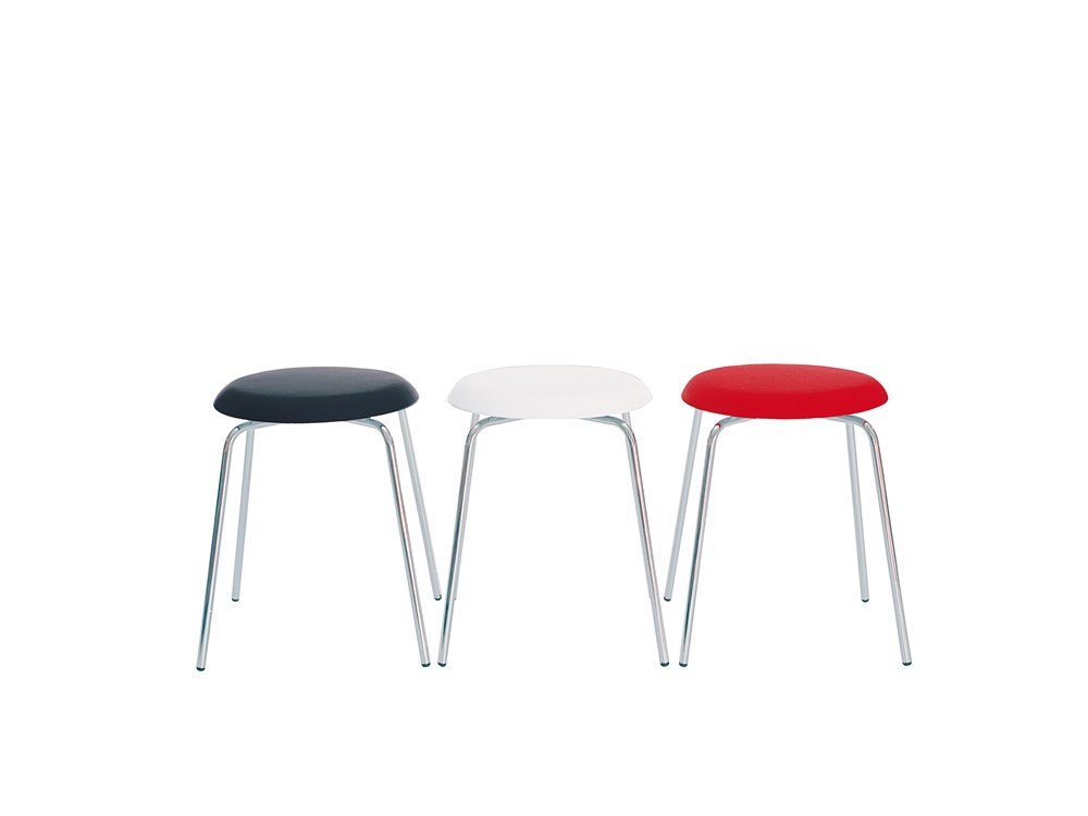 Beine aus poliertem Chrom. Hocker sind stapelbar. Pastillo ist ideal für den Speisesaal, die Küche, das Café, die Bar oder den zusätzlichen Hocker.