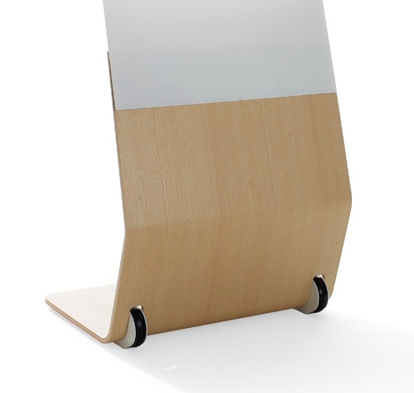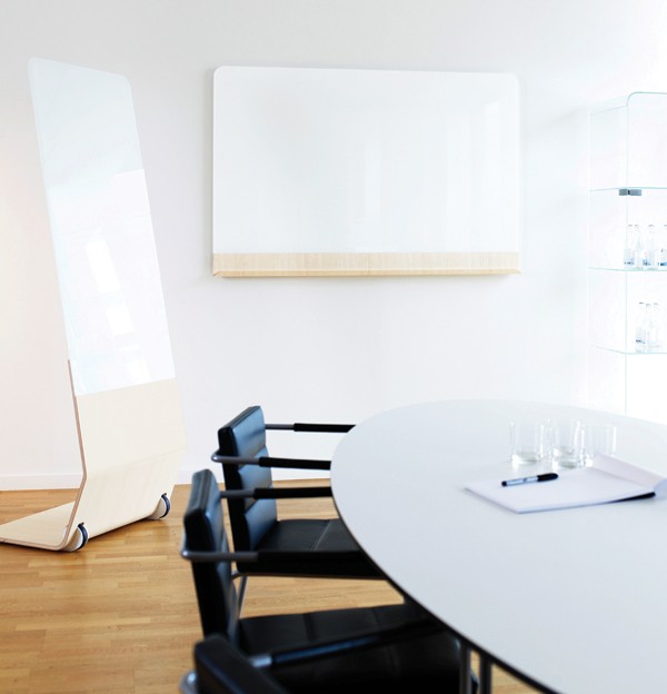 Sense Mobile ist ein elegantes Glasboard mit sanften Formen, die sich harmonisch in moderne Konferenz-und Bildungsanlagen integrieren. Die Schreibtafel besteht aus optisch weißem ESG-Glas und formgepresstem Eschenfurnier. Die klare Linie im Design erfordert, dass sich die Ablage hinter dem Sockel befindet. Der Sockel ist in Esche Natur oder Schwarz gebeizt erhältlich.