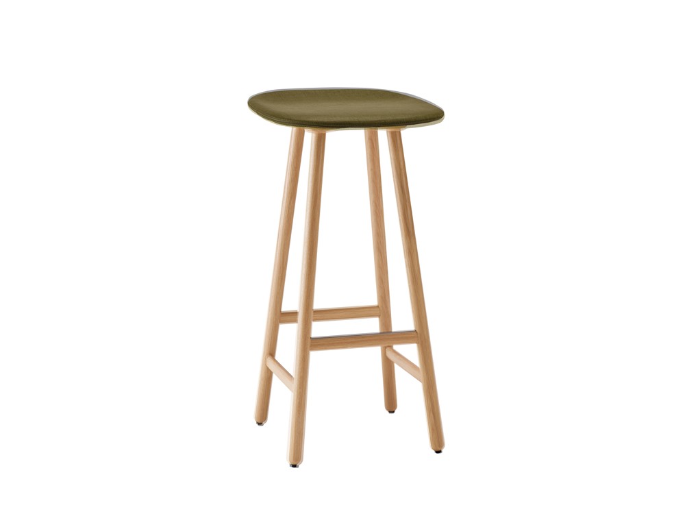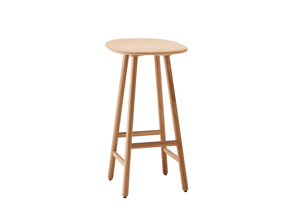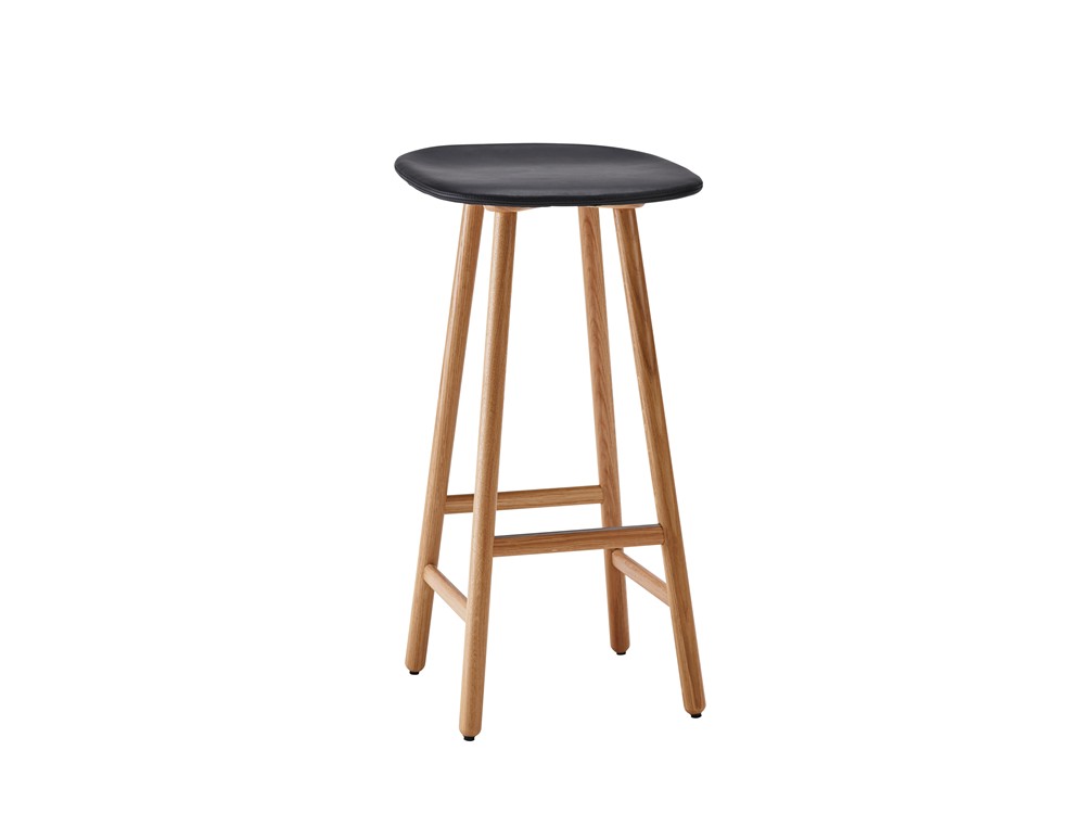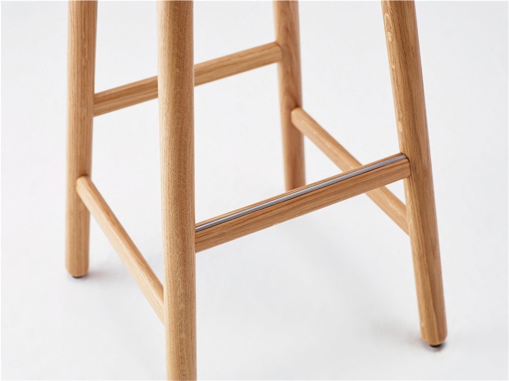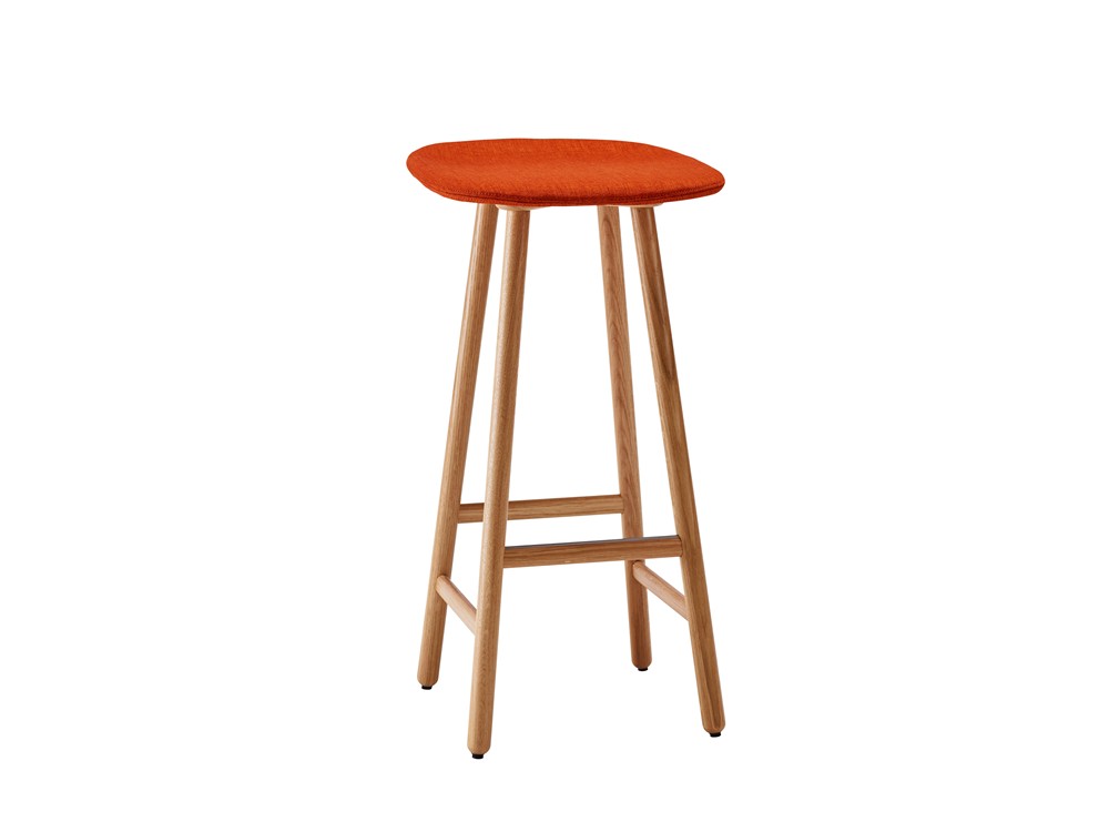 Wählen Sie einen Holzsitz oder einen mit Stoff oder Leder gepolsterten. Die Fußstütze des Hochhockers hat einen Fußstützenschutz aus Edelstahl.