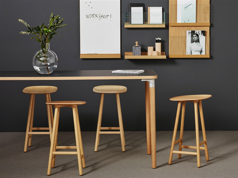 Shell | Stool-Shell Hocker (2015) hat die klaren Linien und die innovative Kombination von Materialien, die das charakteristische Merkmal des skandinavischen Designs sind