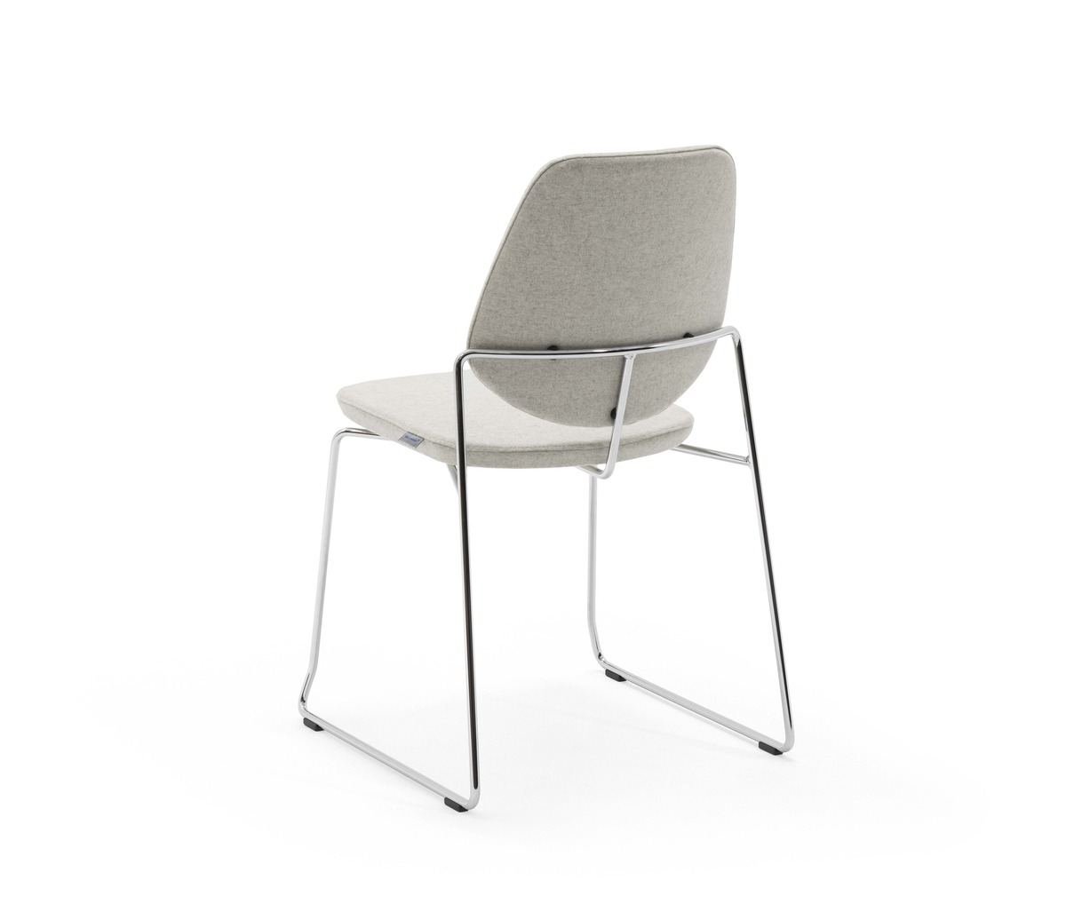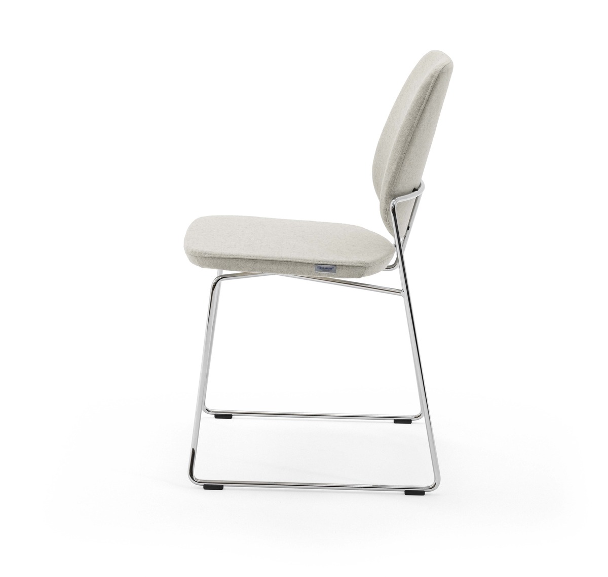 SID Stapelstuhl kommt mit Sitz gepolstert. Rück in Birke oder Eiche natur oder lackiert. Erhältlich mit Armlehnen. Stahl in Chrom oder grau Lack.