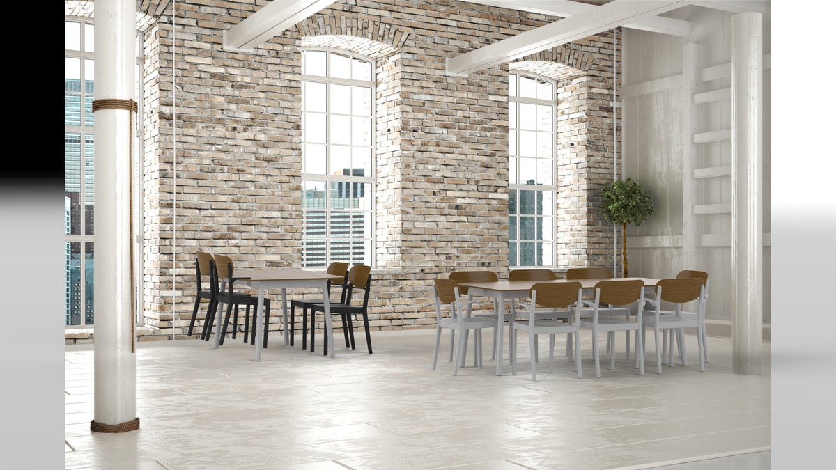 Tischplatten sind Standard in vier Hochdrucklaminaten erhältlich. Birkenlaminat (F7921 Matte 58), hellgraues Laminat (F7927 Folkstone), weißes Laminat (F6463 Sheer White) und Eichenlaminat (F5374 Elegant Oak Naturelle).