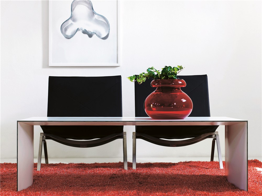Dieser Tisch mit seinen schlanken, eleganten Linien und der Form des Tisches erinnert an einen Flugzeugflügel, eine Konstruktion, die für gute Stabilität sorgt.