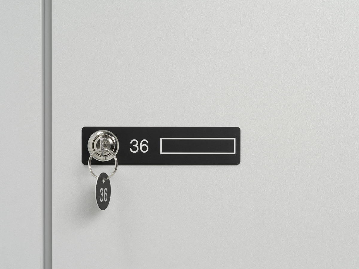 Es ist mehr möglich, als Sie denken. Versehen Sie die Schänke zum Beispiel mit nummerierten Schildern oder Befestigungen für Namensschilder. Möchten Sie verhindern, dass Gegenstände auf die Schränke gelegt werden? Verwenden Sie dann eine schräge Abdeckplatte.