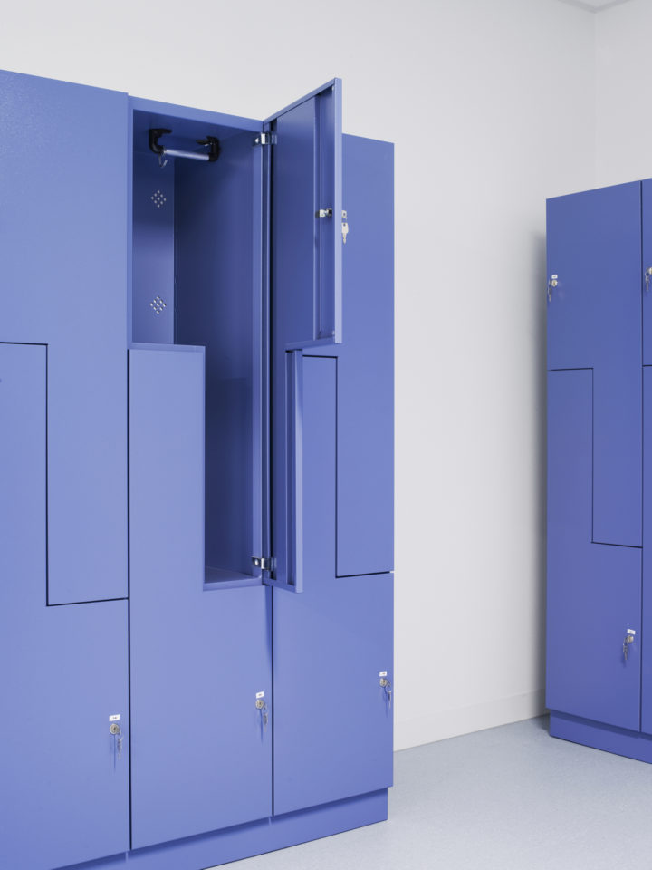 Umkleidekabinenschrank aus Metall für Jacken, Taschen, Schuhe – sind im platzsparenden Z-Schrank Aquarius SZ an ihrem Ort.